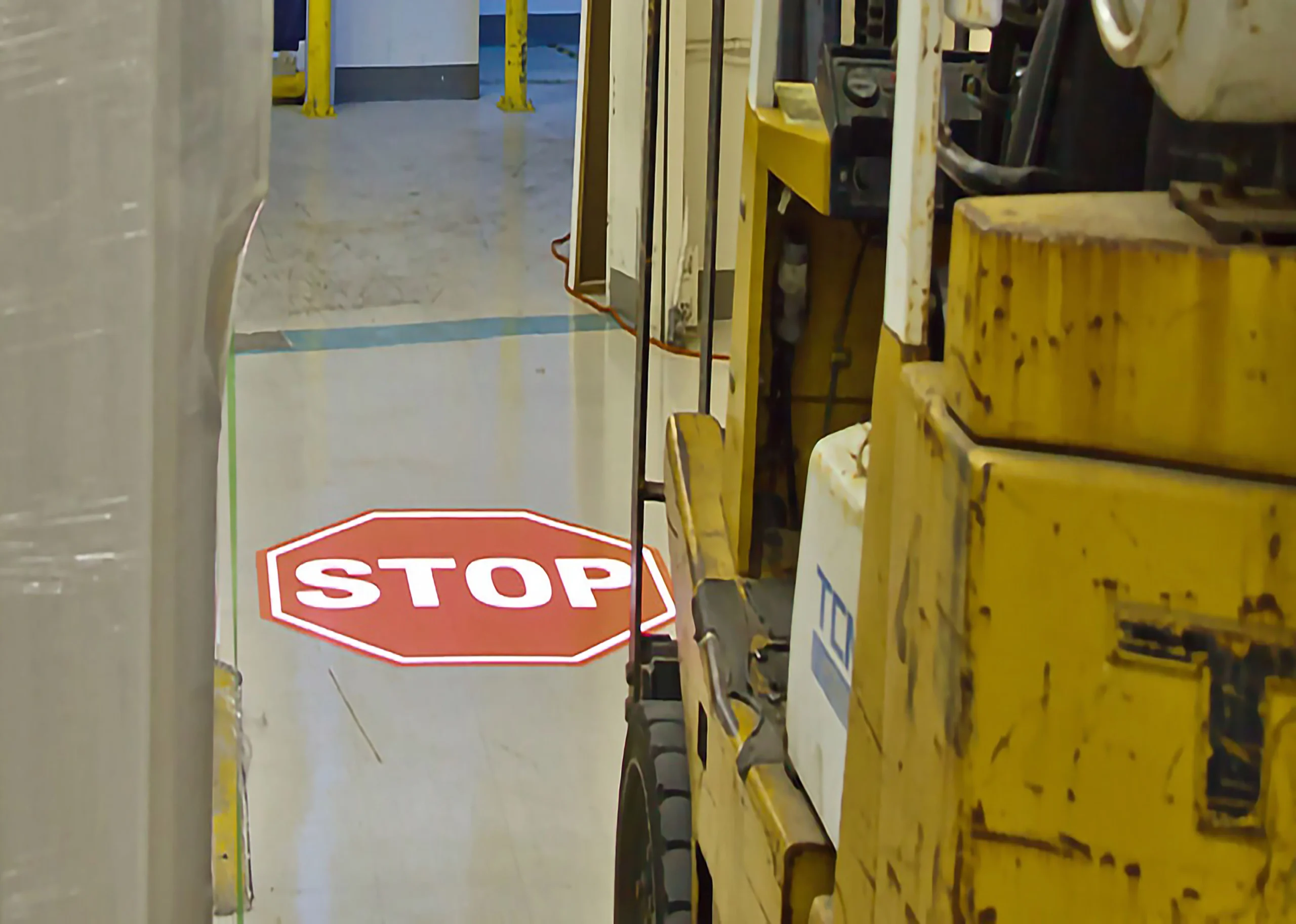 Hohe Belastung durch Staplerverkehr führt dazu, dass Bodenmarkierungen schnell unkenntlich werden.
